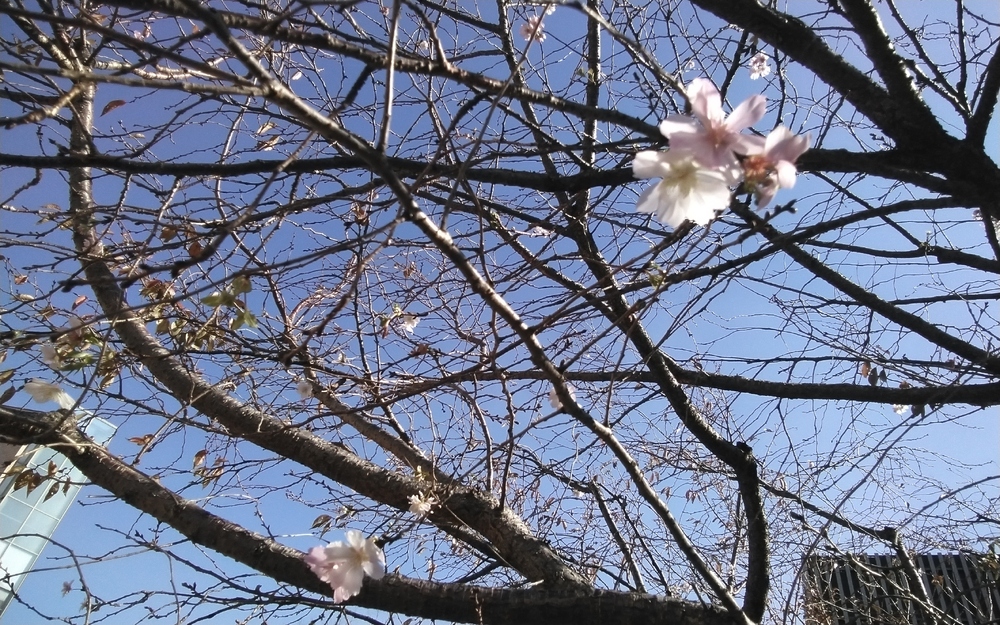 秋晴れの中で凛と咲く十月桜