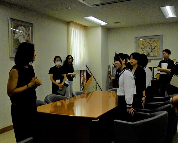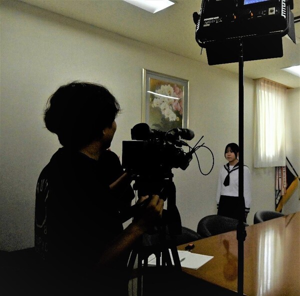 公演当日は秦さんご本人も来校され、さらに千葉テレビの取材も入りました。インタビューでは、ご自身の役を演じた生徒について「自分の分身に会ったような気がします。母校の生徒から贈り物をもらったような機会でした」と語ってくださいました。