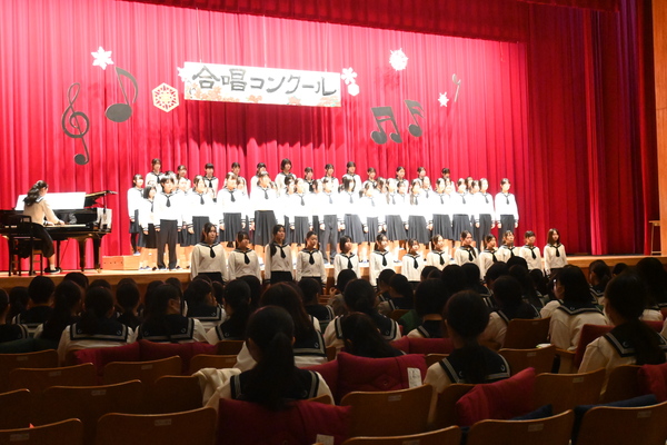 12月18日(木)、本校中学校にて合唱コンクールを開催しました。生徒たちはこの日の本番に向け、音楽の授業やホームルームの時間を活用し、熱心に練習を重ねてきました。
