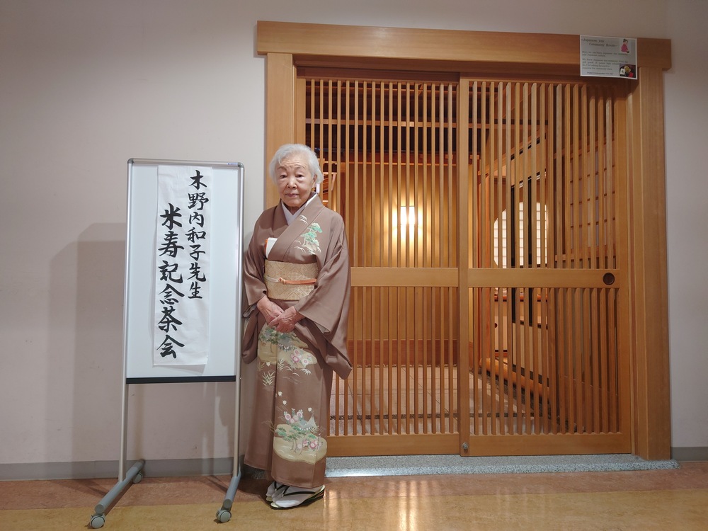 月吉日に茶道部では、茶道部講師である木野内宗和先生の米寿をお祝いし、
