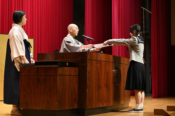 最後に、保護者の皆様、これまでの子育てにご尽力いただき、誠にお疲れさまでございました。これからの3年間は、お子様が大人へと成長していく大切な時期となります。お嬢様方は次第に自立へと歩みを進め、これまで以上に多くの経験を積んでいくことでしょう。まだご心配な点も多いかと存じますが、一歩引いて見守りながら、人生の先輩として支えていただければと思います。私たち教職員も、引き続き皆様とともに成長を支えてまいります。本校を巣立たれた後も、何かございましたらいつでもご相談ください。お嬢様方が社会で大きく羽ばたいていけるよう、これからもともに歩んでまいりましょう。